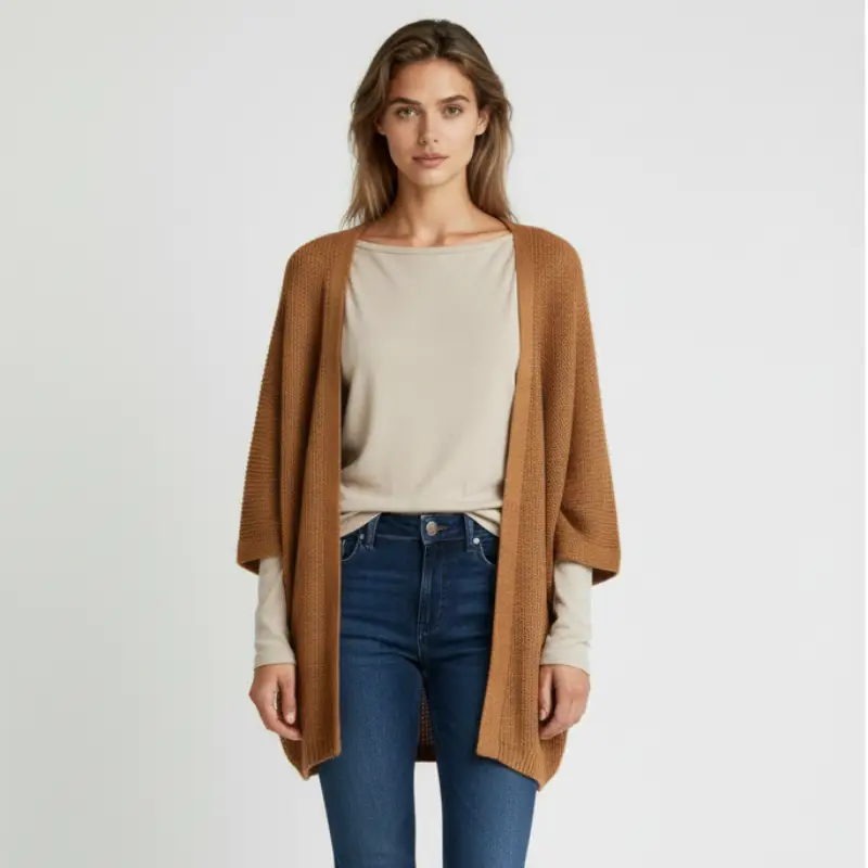 Chaqueta mangas muercielago 3/4 sin botones, 88% acrilico , 12 nylon